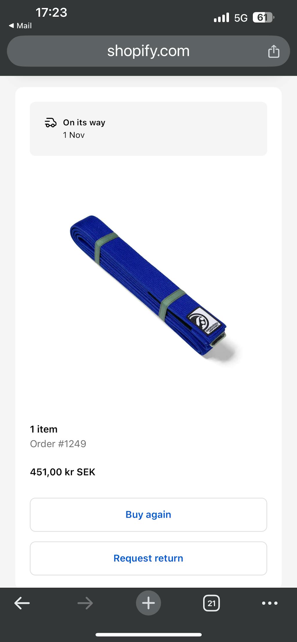 I bought the belt and a grappling shorts some days before 22 September and I still haven’t got them. It has been a month now…